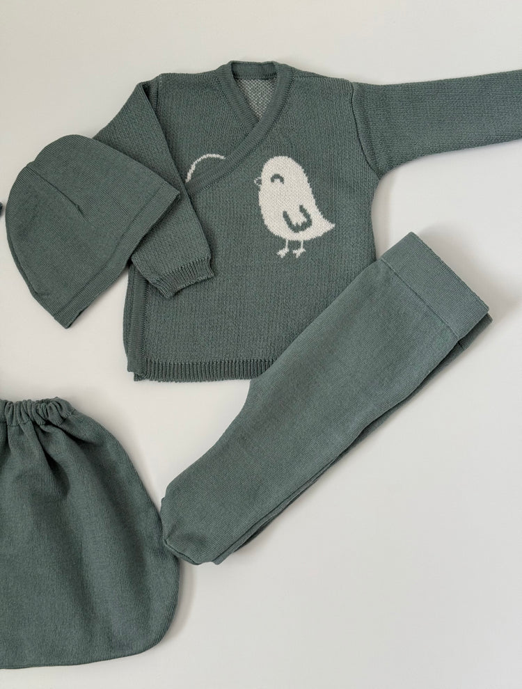 This adorable organic cotton set showcases a charming little birdie and arrives in a cute reusable pouch. Cozy, earth-friendly, and absolutely darling!