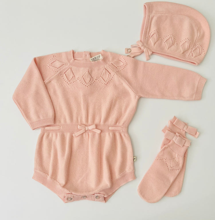 Blush Pointelle Knit Onesie Set In Organic Cotton
