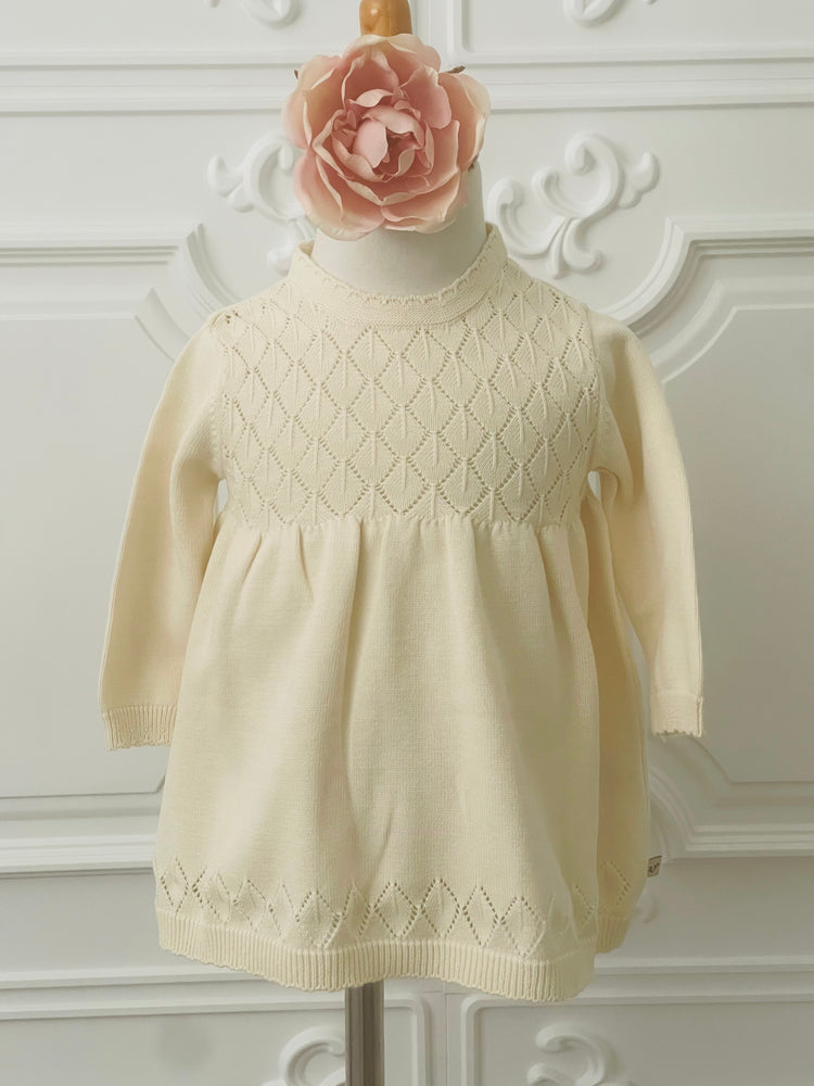 Ivory Pointelle Knit Baby Dress In Organic Cotton