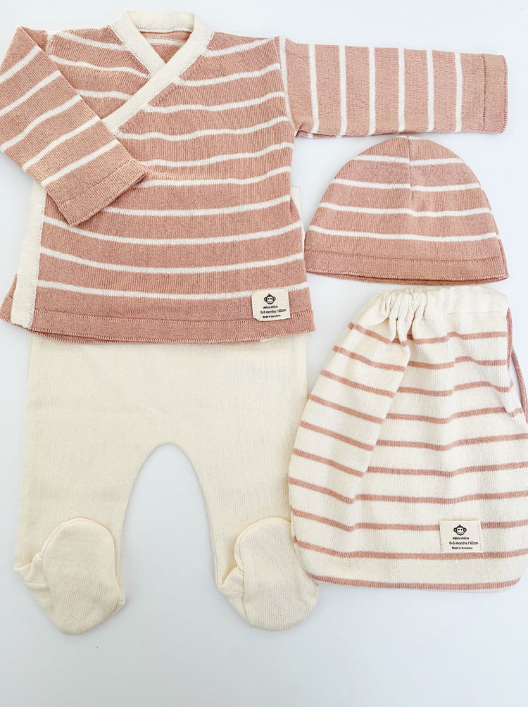 Pink And Ivory Stripes Newborn Set In Organic Cotton