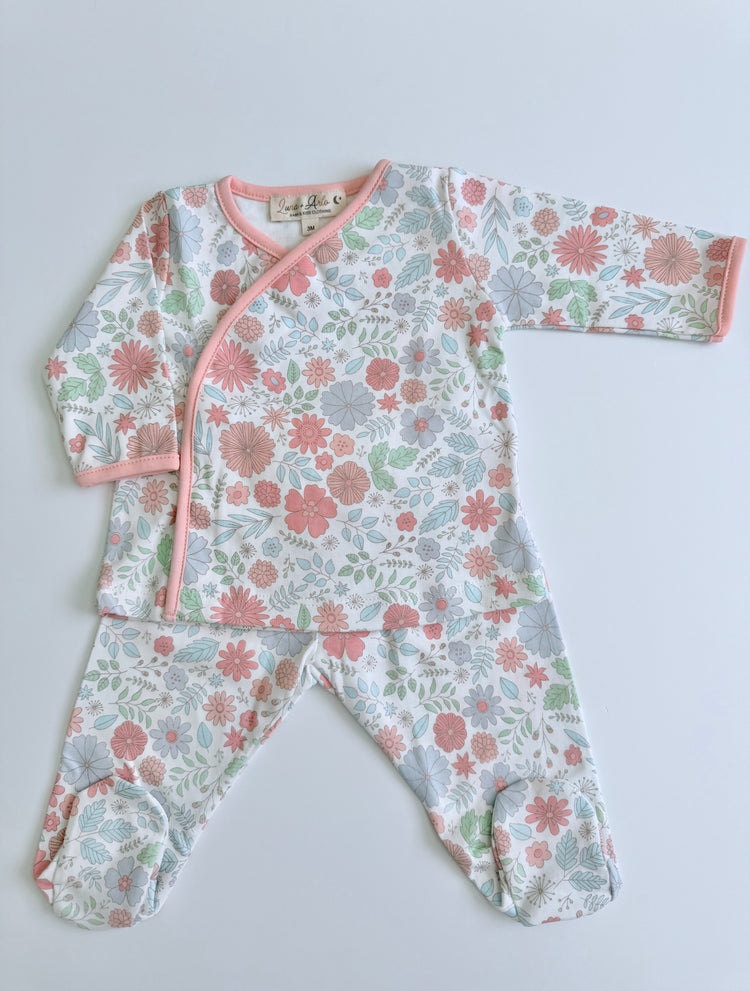 Featuring a luxuriously soft Pima cotton floral outfit and a cozy organic cotton blanket beautifully curated for those precious first moments.