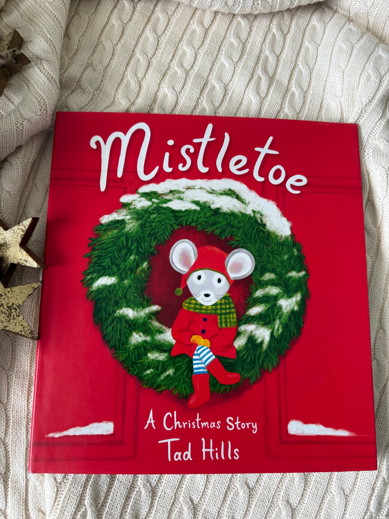 "Mistletoe greets the chilly morning. Snow is falling. What a beautiful day! Finally, it feels like Christmas, she thinks"